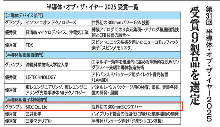 今年6月,由日本《电子器件产业新闻》主办,有31年历史的半导体年度奖揭晓,天岳先进斩获“半导体电子材料”类金奖。