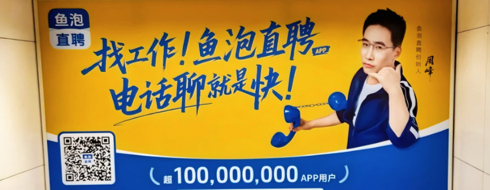 广告中的人,是鱼泡直聘创始人周峰。