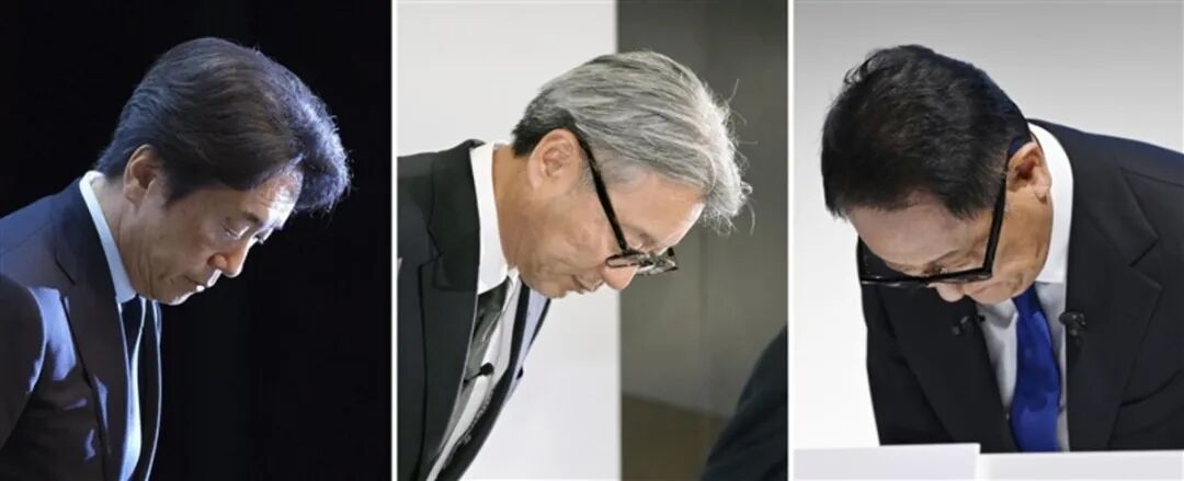 就造假欺诈事件,日本马自达、本田、丰田汽车公司负责人向民众鞠躬道歉图源:央视网